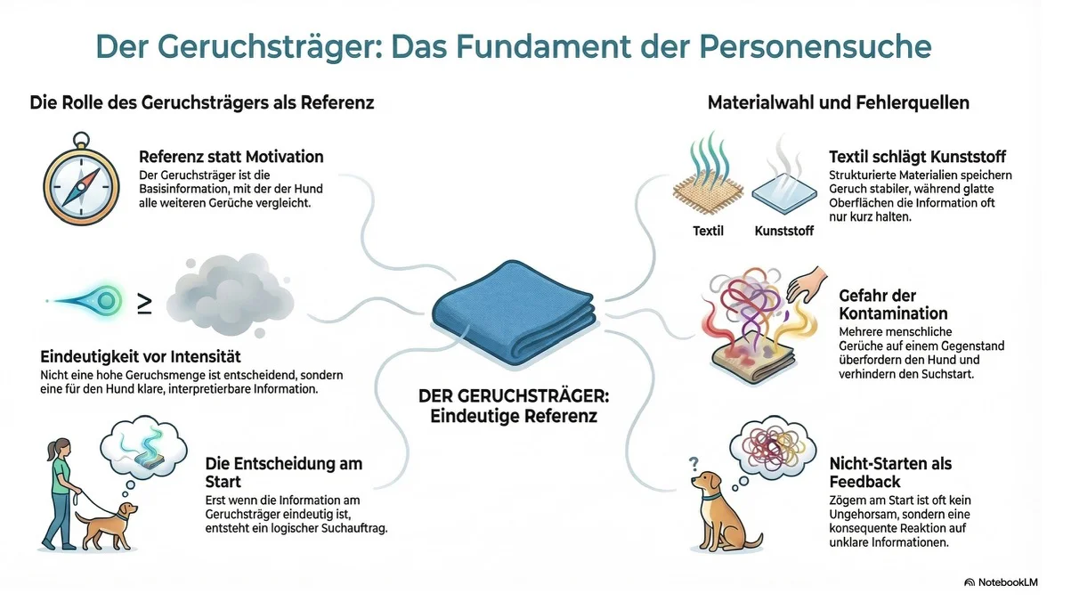 - Geruchserkennung: Der Hund muss in der Lage sein, den individuellen Geruch einer bestimmten Person zu erkennen und von anderen Gerüchen zu unterscheiden. Hunde haben eine außergewöhnlich feine Nase und können selbst schwache Geruchsspuren verfolgen.